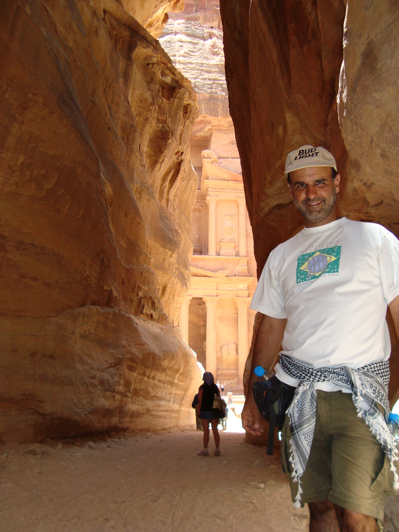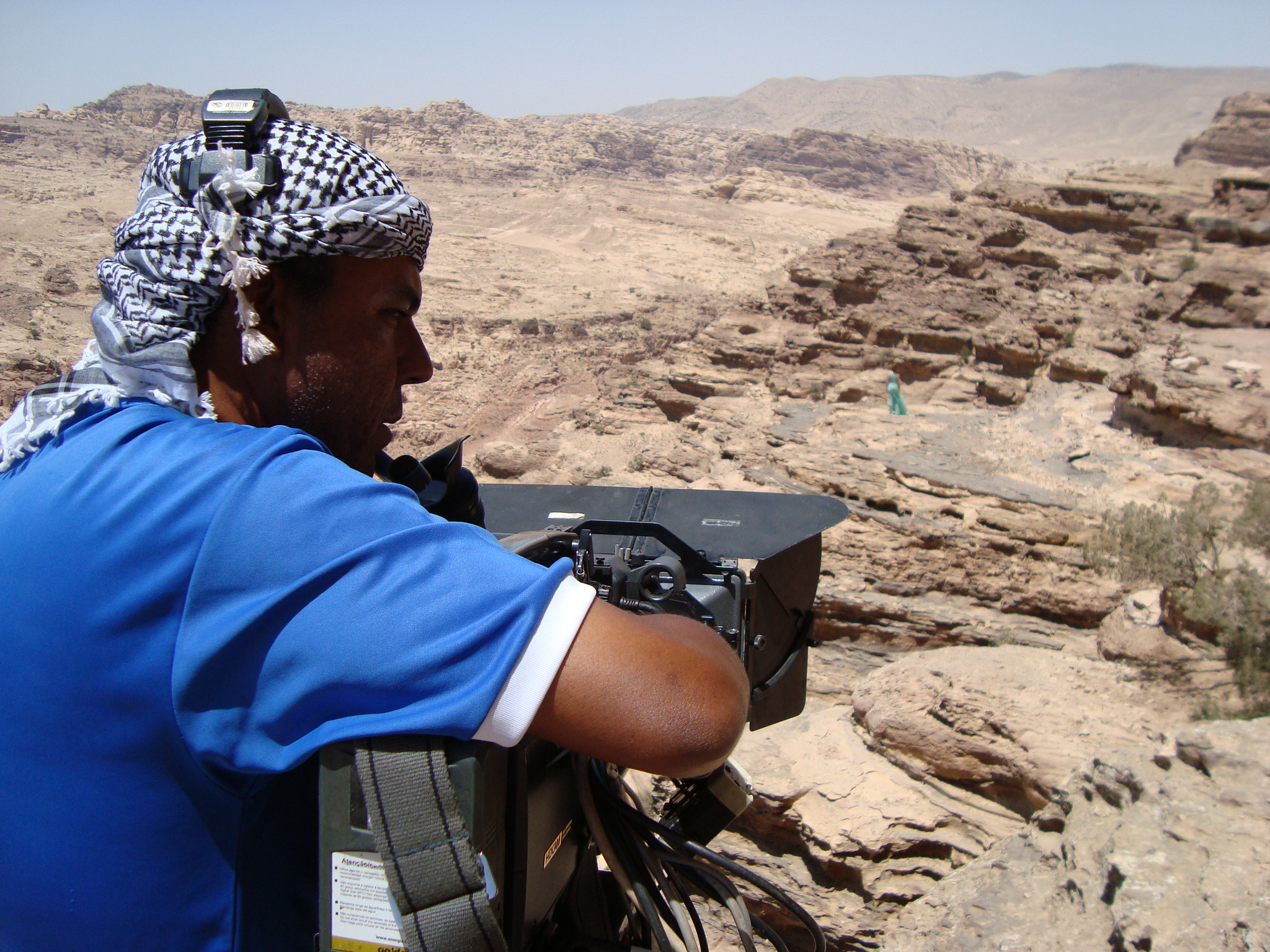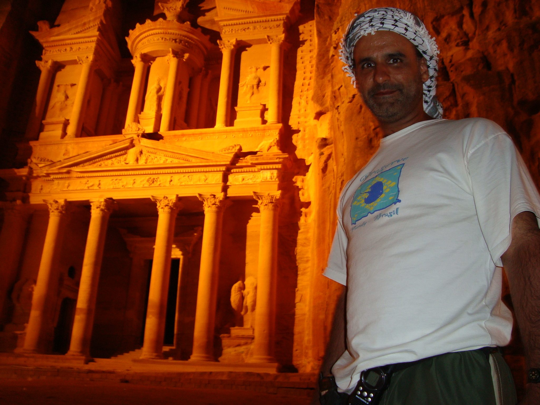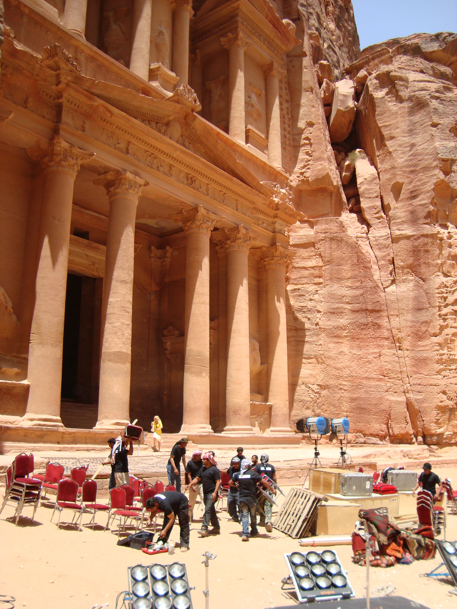 Quer mais desafio? Nunca na História, alguém tinha feito uma gravação noturna em Petra. Diurnas, várias (como Indiana Jones e Transformers). Mas, nós? Tínhamos no enredo da novela um desfile noturno acontecendo em frente à construção do Tesouro, principal ícone da cidade de 312 A.C.. Conseguimos autorização do Governo, com apenas uma restrição: pela manhã, na abertura do Parque aos turistas, o pátio deveria estar completamente livre de equipamentos e cenários. Poderíamos então iniciar a construção do circo (passarela, torres de iluminação, posicionamento de refletores, câmeras e gruas, maquiar elenco e figuração gigante) apenas após as 18h, gravar todas as cenas e desmontar o set sem deixar vestígios até as 05h da manhã seguinte. Como fazer isso tudo nessa pequena janela de tempo seria impossível, partimos para outro desafio: gravar cenas noturnas da fachada do Tesouro (ato sem precedentes em Petra) a serem usadas como fundo para cenas a serem gravadas no Brasil (também sem precedentes na Globo, nessas dimensões).